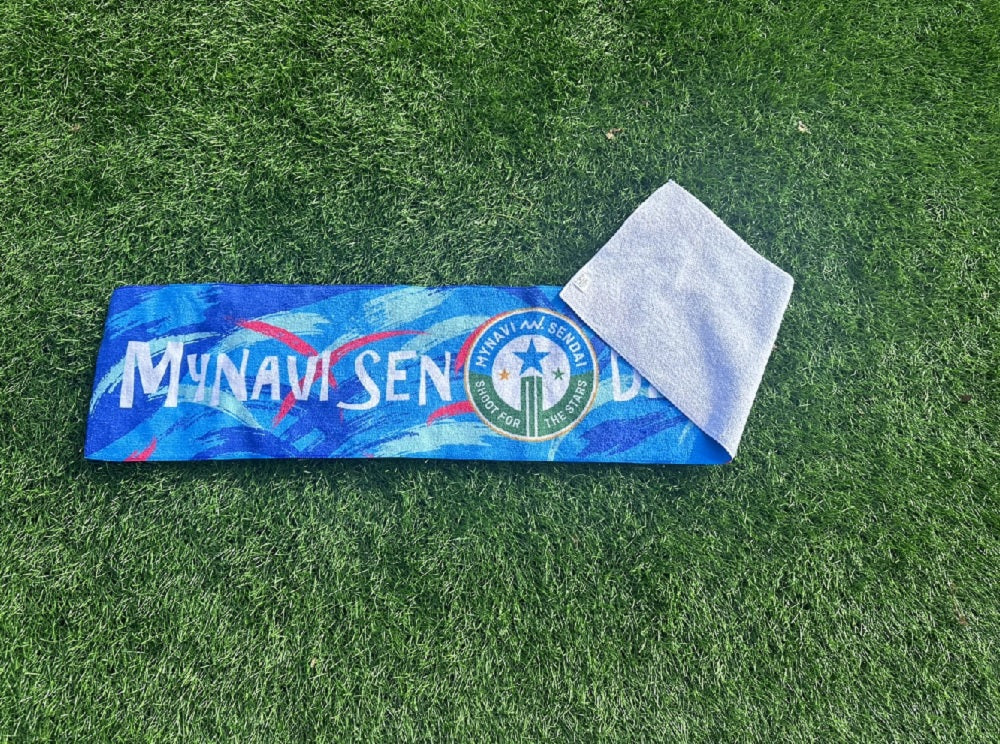 今回は、23-24シーズン新デザインユニフォーム柄のタオルマフラーです。