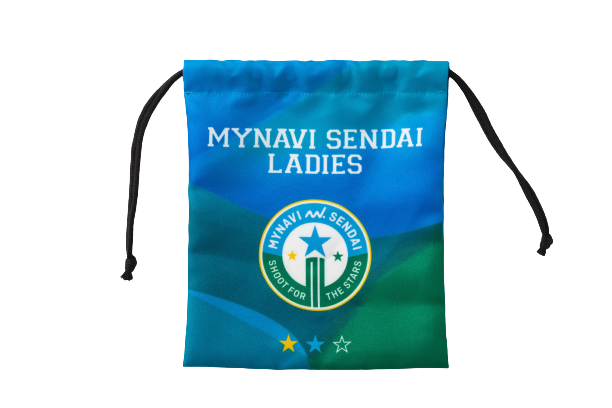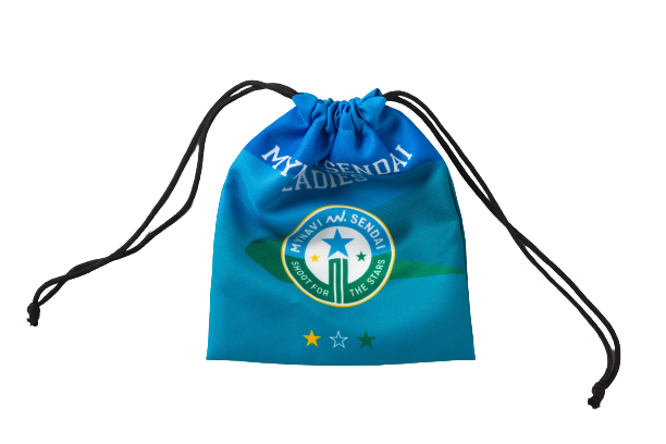 【セールスポイント】ちょっとした小物を入れる袋として定番の人気を誇る巾着。エンブレム入りデザイン柄のベーシックタイプとアップ顔が可愛いクラブマスコットのマイビィ柄の2デザイン。