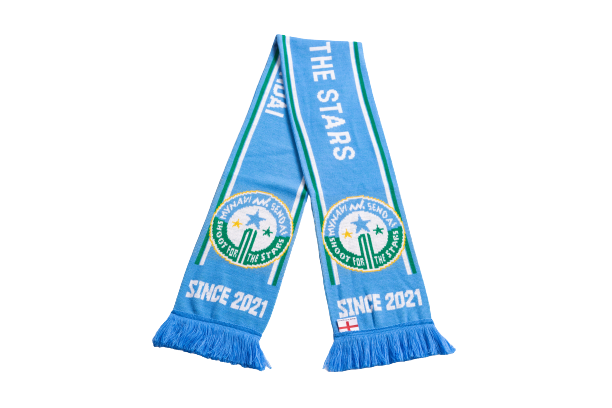 チームエンブレムと今シーズンのスローガン「SHOOT FOR THE STARS」を施したニットマフラーが登場!