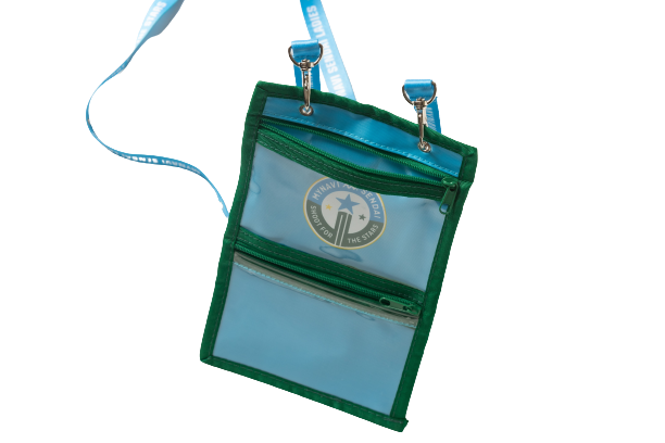 フラップの付いたクリアポケットもポイント。背面には2つファスナーポケットが付いているので、小銭なども入れられて観戦に便利なアイテムです。